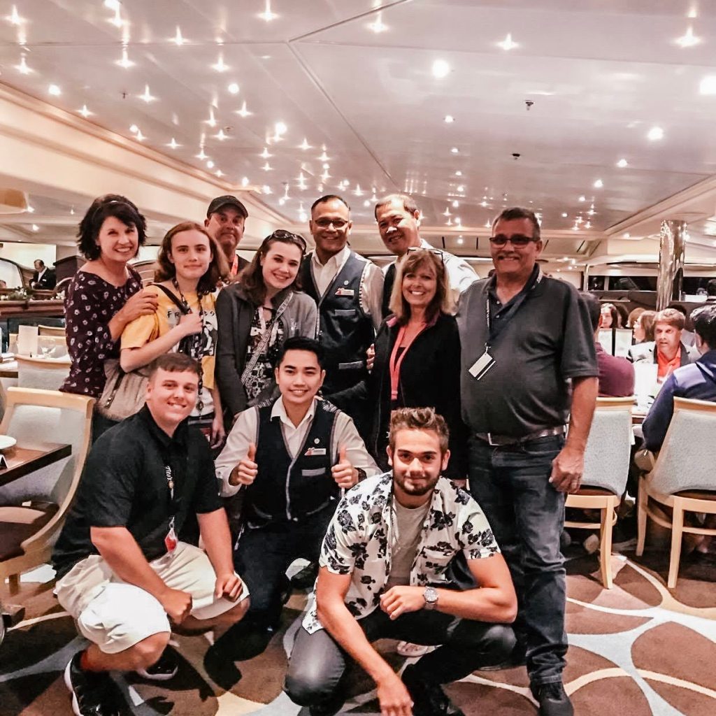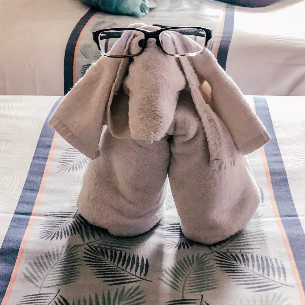 First, I’ll go over the different things you can do on the ship for those who don’t know. I’ll start this off with food. There is always so much food on a cruise. Many of the food options are buffets. You can also find sit-in restaurants and cafeteria-style lines. Some of the food is even available 24 hours a day! Pizza, ice cream, and room service meals are available at any time! Both times that I have been cruising, I know I ate more than I should have, haha. A majority of the food on the boat is free! It’s hard to pass up all those snacks when you don’t have to pay for them! My favorite dining option on the cruise was anytime dining. Anytime dining is the best place to be for dinner every night! You get to go to dinner whenever you choose! There are no set schedules and rushing to get ready for dinner. On the sunrise, we had an amazing team of waiters! we requested our team every night for dinner. Our waiters were very friendly and they remembered us all by name. They are with us in the big group photo below. When you go to the anytime dining restaurant, you get a three-course meal every night. Each person gets to choose their appetizer, main dish, and dessert. Everyone in your family can eat different things on the same night and be happy with their choice! When it’s time to order dessert, a must-have is the Carnival melting chocolate cake! It’s like a melt in your mouth lava cake, yum. Another fun addition to anytime dining is formal dinner night. Every Carnival cruise will have a formal dinner night. For formal dinner night, everyone is to wear formal clothing in the dining room. It is really fun to get dressed up and have a nice, fancy dinner for a night! I’d say I made it pretty clear that are tons of eating options on the ship. Other than eating, you can do so many more things. You can go to comedy shows, go to trivia games, relax out on the deck, play in the arcade, and much more! The Sunrise even has some extra features that we did not have on the first ship. There is a movie screen above the pool, a foosball table, a fun obstacle course, and a few more fun additions! Also I love seeing the towel animals. They are a Carnival tradition!